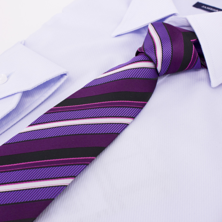 首先,花色与图案的选择,一般来说素色、斜纹、圆点、和几何图案的领带都能够与任何款式的西服或衬衫搭配。但是要注意的是草履虫的图纹却只能在休闲时穿戴,在上班时最好避免使用,否则会有失大雅。